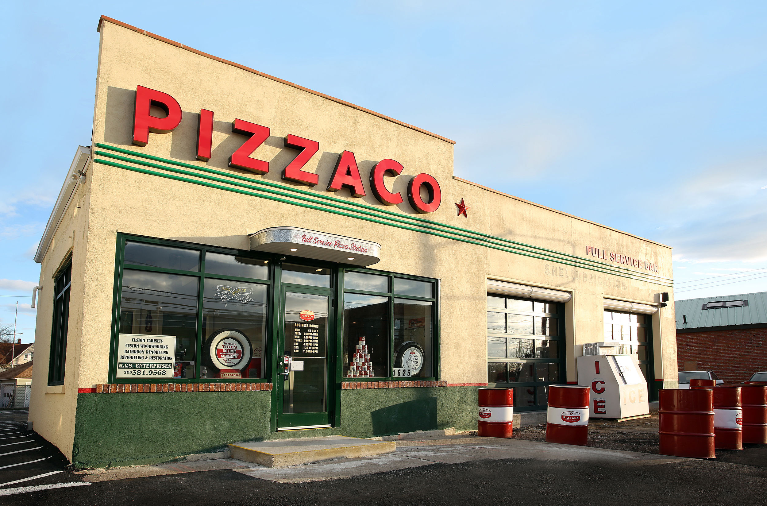Find the best pizza around at PizzaCo in Stratford. Here they make creative and seasonally-inspired “garage-fired” pizzas in their brick oven from Italy. Enjoy craft beer, cocktails, and wine from the full-service bar inside their vintage gas station/garage restaurant.